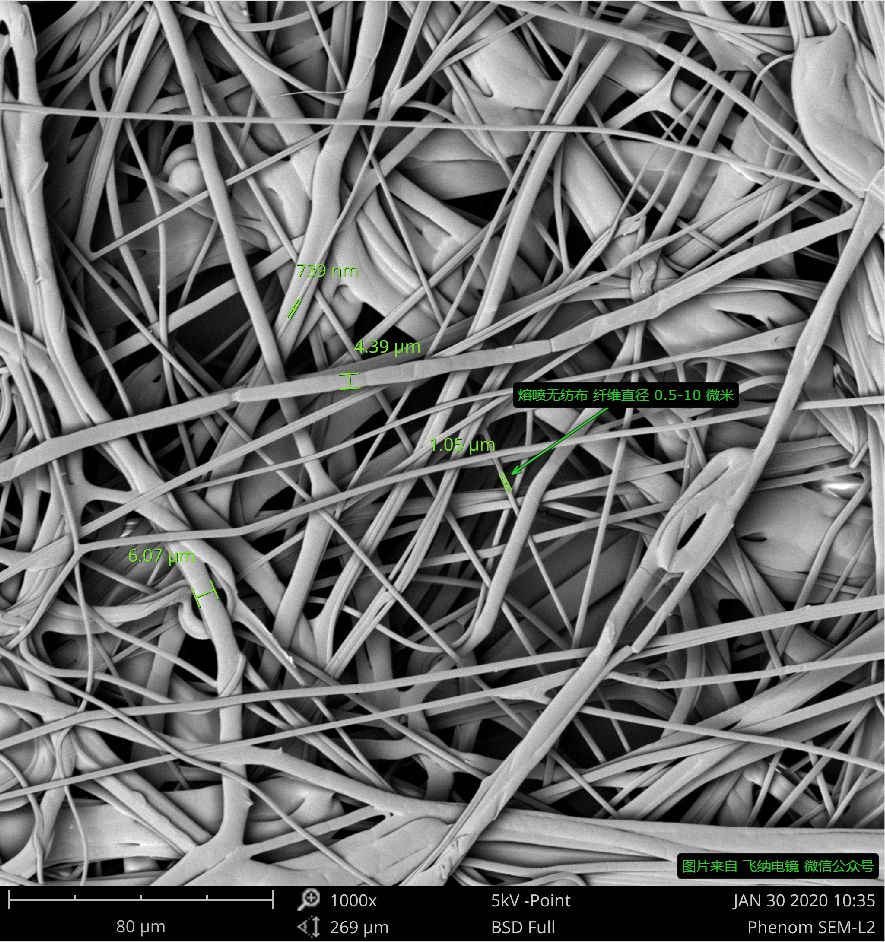 Namun, apakah Anda akan khawatir tentang kinerja topeng saat Anda melihat celah besar dalam gambar? Bagaimana cara masker filter virus dengan celah yang begitu besar? Faktanya, virus COVID-19 normal berdiameter sekitar 0,1μm. Namun, itu hanya dapat bergantung pada tetesan atau beberapa hal lain, alih -alih tetap hidup sendiri. Diameter tetesan, bagaimanapun, adalah sekitar 5μm, yang membuatnya disaring oleh serat topeng. Untuk hal lain, sebagai filter serat, meltblown dapat menarik tetesan -tetesan itu dengan virus melalui listrik statis dan dengan demikian mencegahnya masuk.